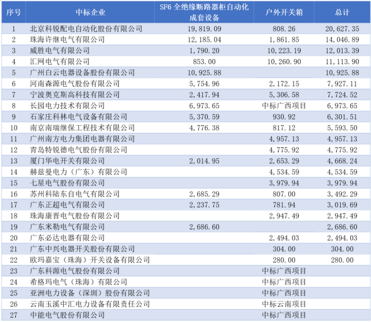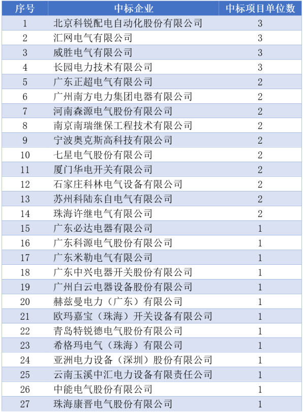 3.2南網(wǎng)2020年度野外開關(guān)箱產(chǎn)品中標(biāo)情況