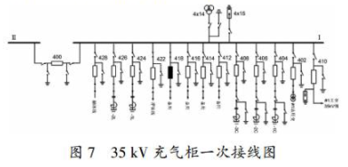 環網配電中的用電單位配電系統接線(環網單元)的電源進出線柜不設維護設備,見圖4~6.放射式或樹干式配電系統的用電單位終端配電所,進出柜應設維護設備。