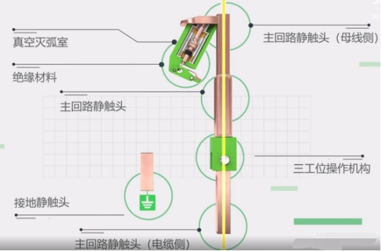 并聯(lián)真空開斷計劃由真空滅弧室和空氣中的阻隔開關(guān)組成,其完成了常見的三工位開關(guān)操作,而且零件數(shù)量小、本錢低。