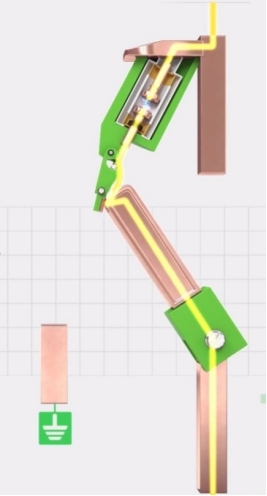 然后,電流通過處于閉合方位的真空滅弧室。接下來,在動觸頭的推動下,樞軸桿旋轉(zhuǎn)并驅(qū)使真空滅弧室開斷。