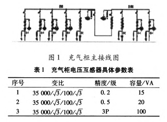 變電站位于高原地區,海拔2100m。變電站選用某公司生產的35kV中壓氣體絕緣開關設備。主接線如圖1所示,其中電壓互感器型號為JDZx-35(A、B、C)型,具體參數如表1。