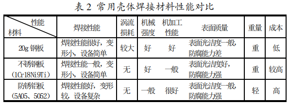 環(huán)網(wǎng)柜焊接氣箱常用材料主要有20g鋼板、不銹鋼板(1Cr18Ni9Ti)、防銹鋁板(5A05,5052)等。其性能對(duì)比見(jiàn)表2。