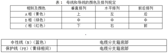 (1)選用選用矩形母線,材料為T2電工銅。并選用不同相色熱縮套管做絕緣處理。熱縮套管不得開裂和起皺,母線接頭處用熱縮絕緣盒關閉。絕緣熱縮護套材料應具有阻燃、防腐、抗老化的要求,老化壽數不小于30年,具體試驗辦法和要求參照GB/T2951.14中規則實施。(2)銅排截面的挑選應確保能夠耐受IEC60298中引薦的額外短時耐受和峰值耐受電流的要求,N相(L0)母線與三相母線規范相同,PE排截面不低于相排截面的1/2。其間設于野外的低壓電纜分支箱配備4根母排(3L+PEN),設于戶內的低壓電纜分支箱配備5根母排(3L+N+PE)。(3)設備中母線和導線的色彩及擺放應契合GB/T4026和GB7947及表1的規則;